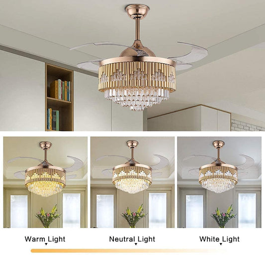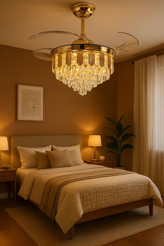 Majestic Glow Crystal Chandelier Fan – Luxury Retractable LED