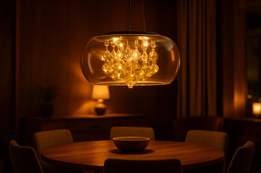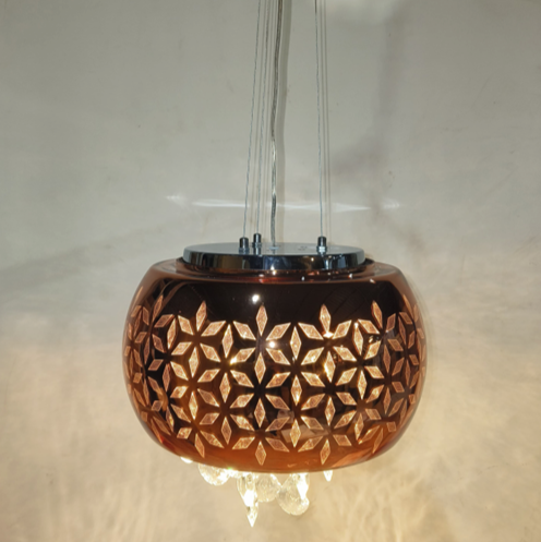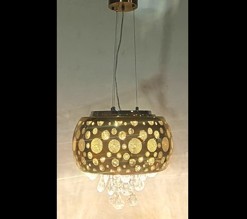 Amber Glaze Royal Pendant – Tinted Glass Dome & Sparkling Crystals