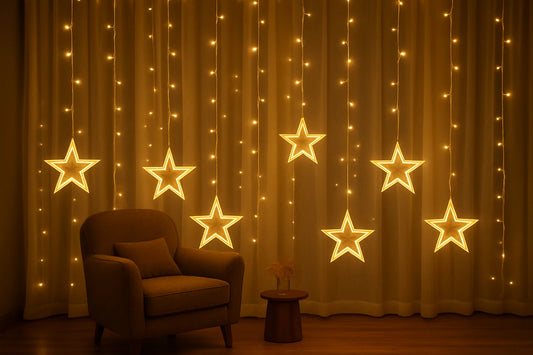 B&B Golden Star Curtain LED String Lights – Warm White Hanging Decoration