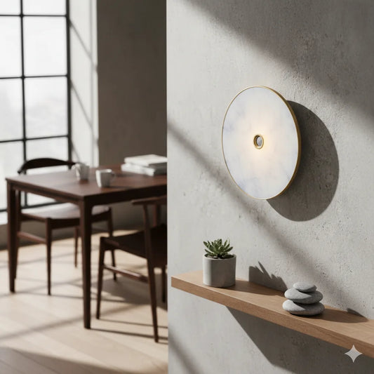 B&B Zenith Marble & Brass Wall Sconce | Luxury Round LED Wall Light