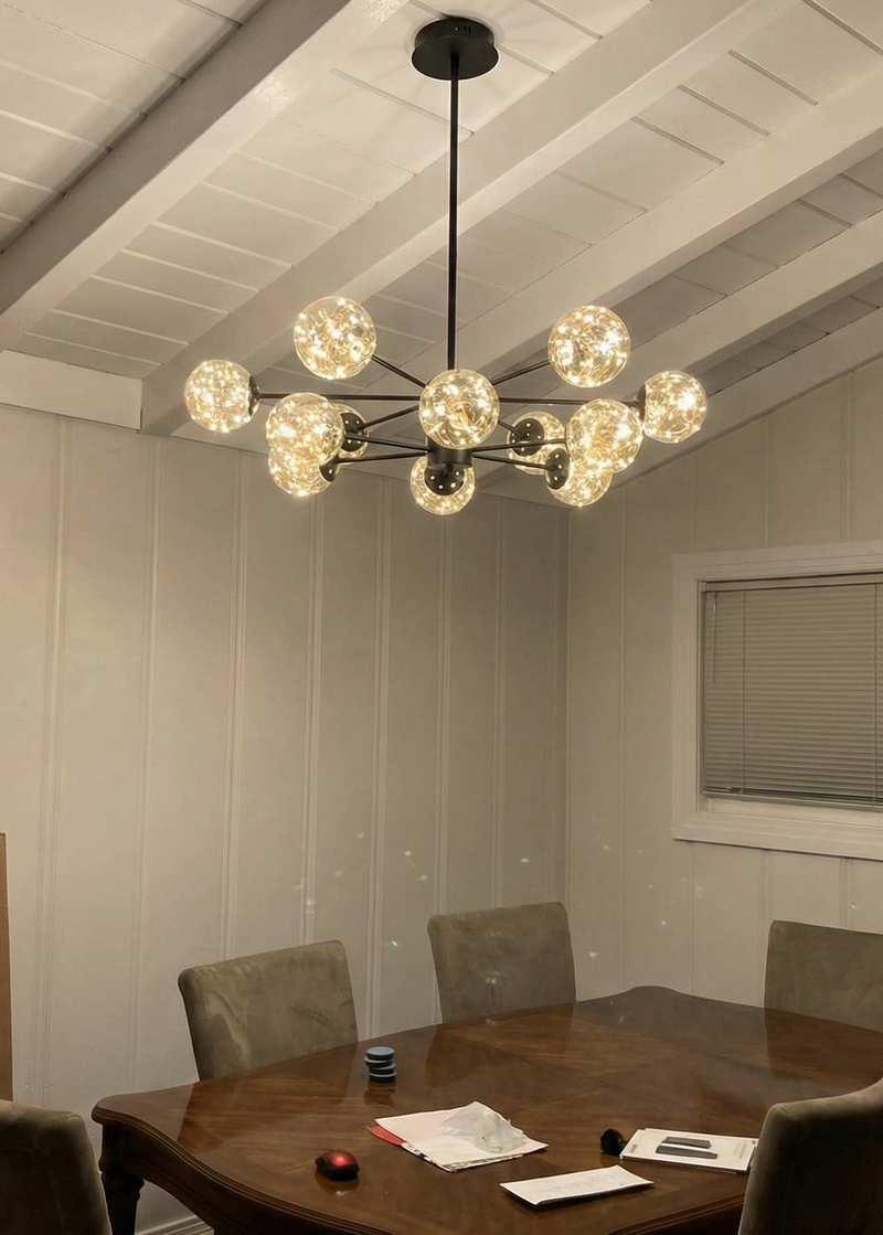 This piece looks like something out of a luxury interior magazine. The arrangement of the globes is so elegant and modern. We installed it over our dining table and now every meal feels special. Build quality is impressive and it feels very durable.