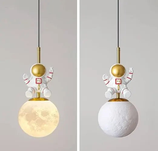 Inspire dreams of space and adventure with the B&B Cosmic Explorer Moon Lamp – a unique pendant light featuring a tiny astronaut cheerfully riding a glowing moon. This whimsical design is perfect for sparking curiosity and imagination, whether in a child's bedroom, playroom, or as a standout piece in space-themed decor.