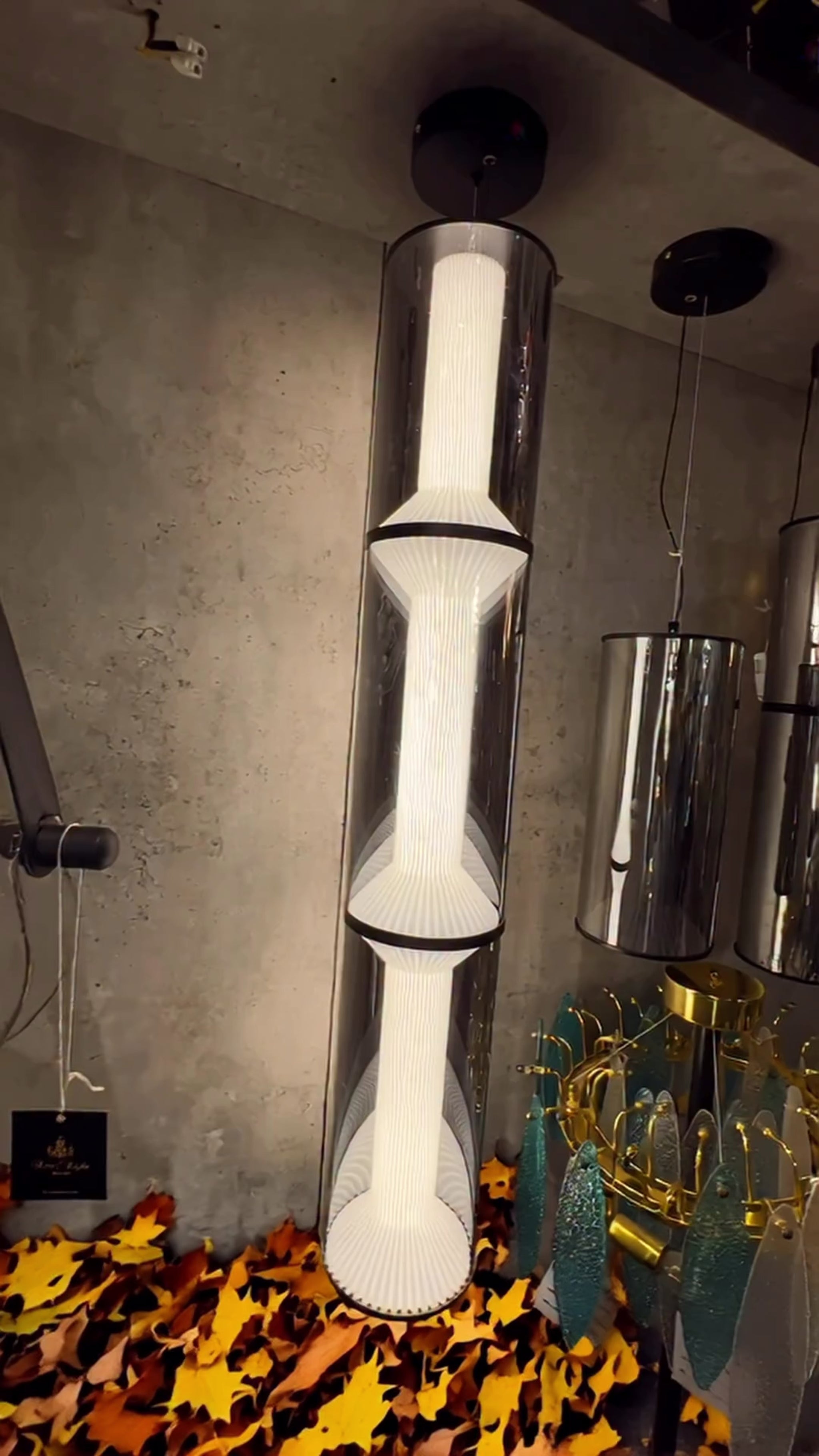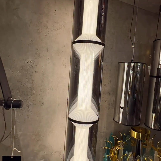 The Lumos Cylora Glass Pendant Light is an exquisite expression of minimal modern design. With its sleek cylindrical form and layered frosted acrylic diffuser encased in a smoked glass shell, it delivers a soft, diffused illumination that enhances any space with sophistication. Suspended elegantly from a black ceiling mount, this pendant light blends industrial aesthetics with refined elegance — ideal for contemporary living rooms, dining areas, or luxury commercial interiors. Its slender vertical profile makes it a perfect choice for corners, stairwells, or clustered arrangements in high-ceiling spaces.