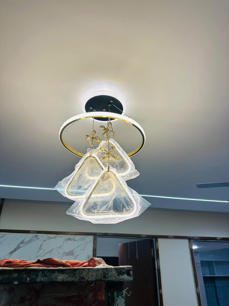 Installed it above our dining table and it instantly created a grand, fine-dining ambience. The combination of metallic frame and crystals makes every meal feel like a special occasion.