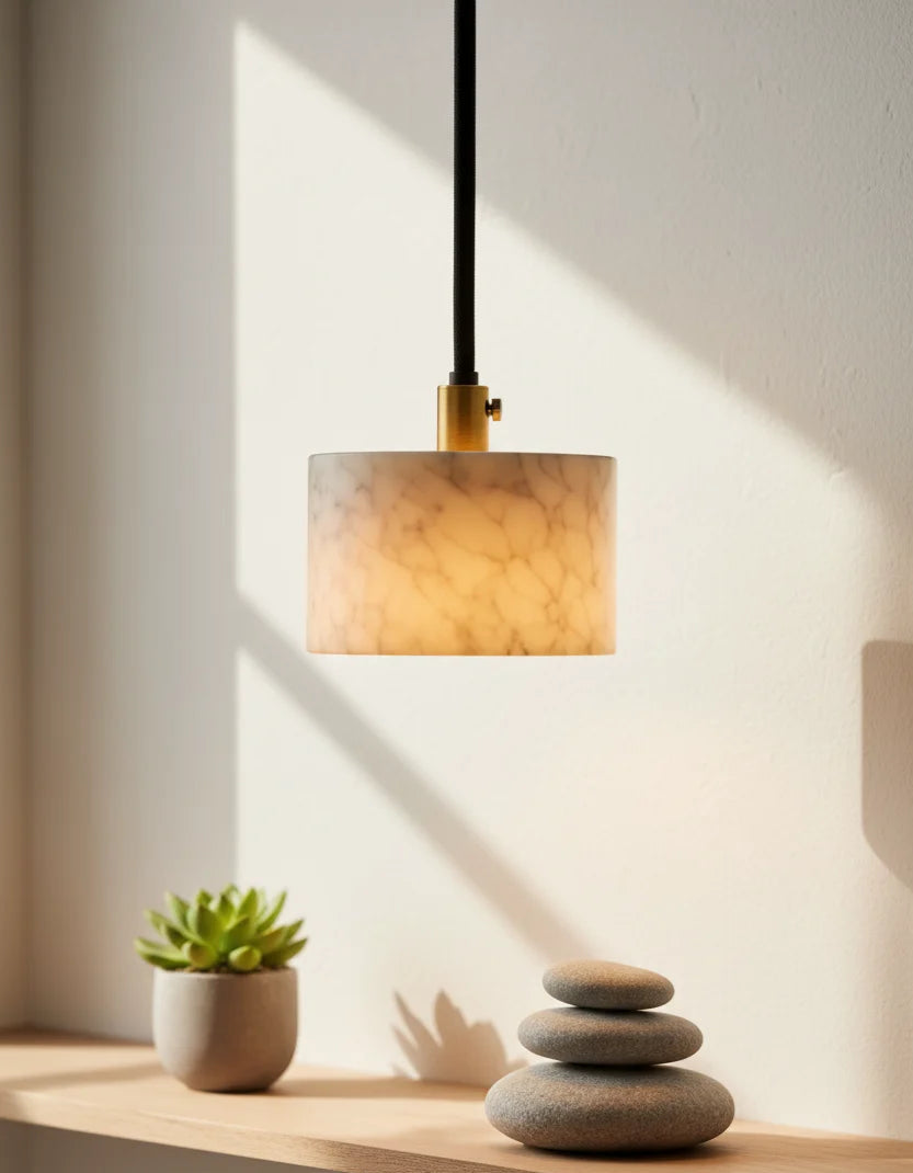 The Marble Aura Pendant Light exudes elegance with its smooth, cylindrical marble-textured shade and soft ambient glow. Designed to bring warmth and sophistication, it perfectly complements classic, modern, or luxury interiors. Ideal for spaces that require a touch of refinement and comfort.