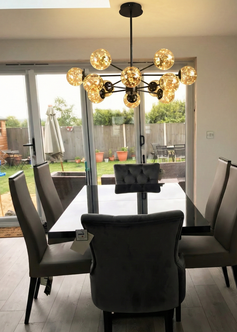 Modern 16‑Glass Statement Chandelier – Rustic Black Elegance