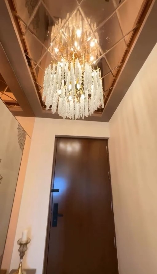 Installed in the living room, it gives a very calm, resort-like feel. The mix of wood and soft light creates a relaxing environment.