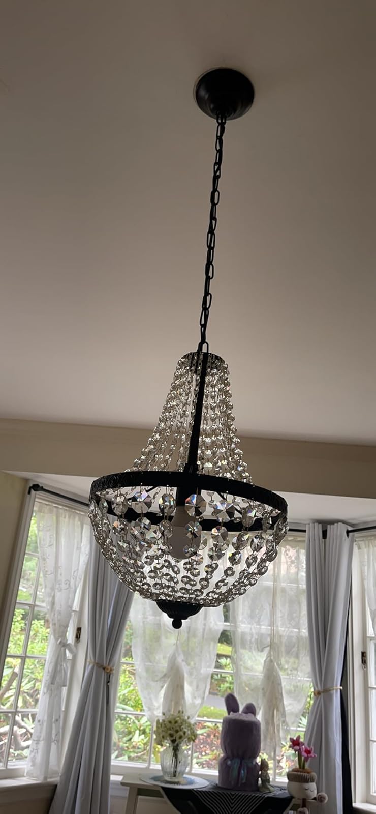 The chandelier brings a sense of warmth and comfort, making larger rooms feel more intimate and homely.