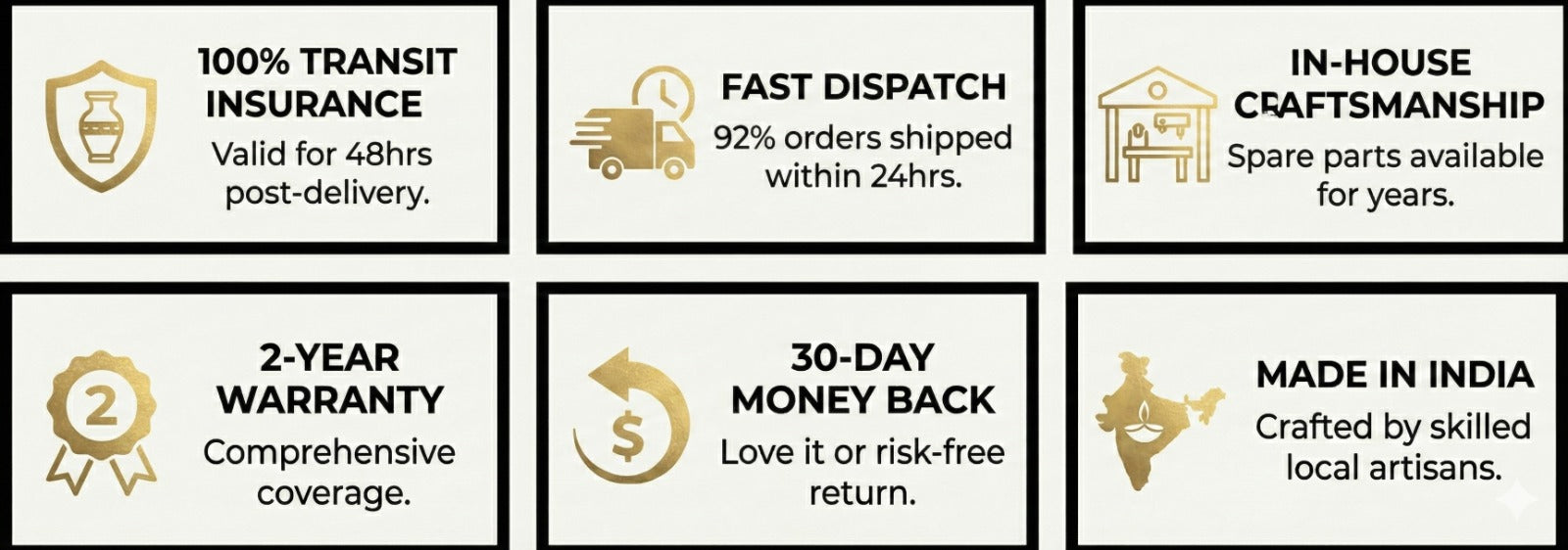 At Bliss&Birch, we prioritize your satisfaction and peace of mind. That's why we offer a comprehensive 100% Breakage Insurance during transit. Should you receive a damaged product, simply notify us within 48 hours of accepting the delivery and provide an unboxing video.
