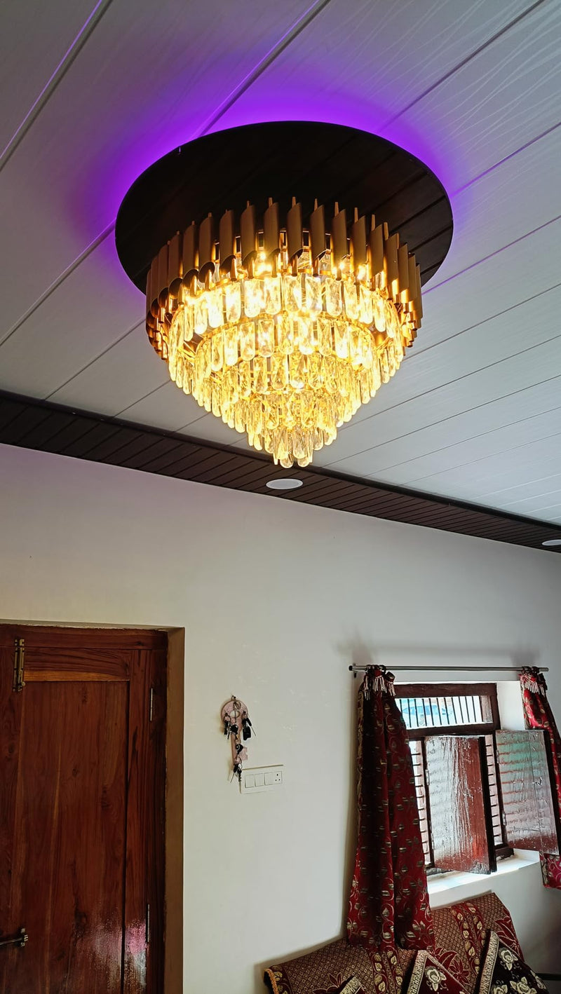 Golden Glow Crystal Chandelier – Brilliant Ambient Lighting