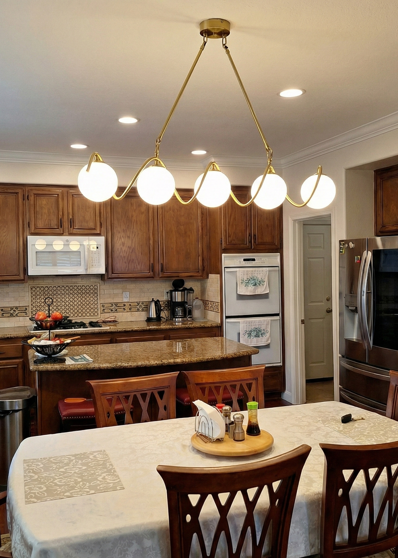 Inspired by the iconic mid-century design, this fixture features glass globes extending from a central iron core. It spreads light in every direction, eliminating dark corners and filling your room with energy and style.