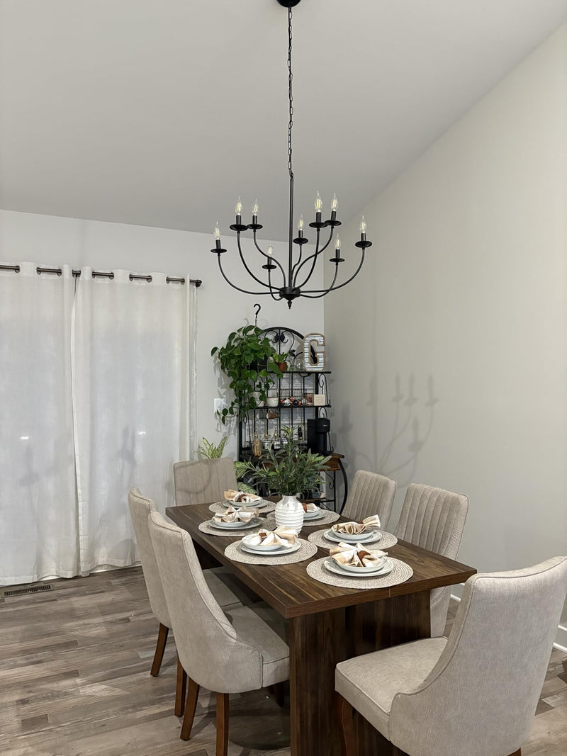 The multiple heads help distribute light evenly along the length of the chandelier. This makes it very practical for dining and working surfaces.
