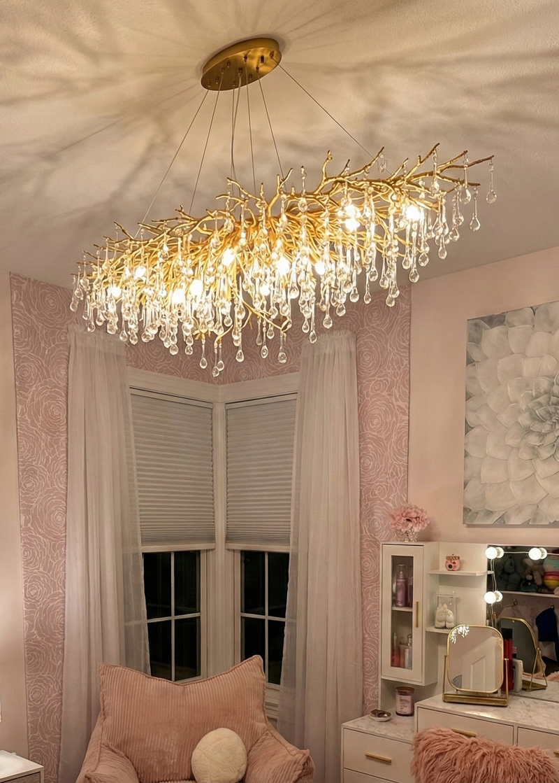 Nature's Willow Crystal Branch Chandelier – Luxury Gold & LED