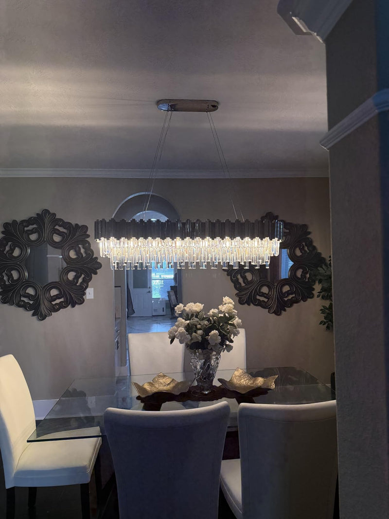 The chandelier’s proportion and drop help visually fill vertical space, especially in rooms with higher ceilings.